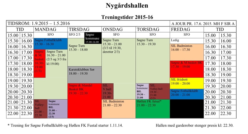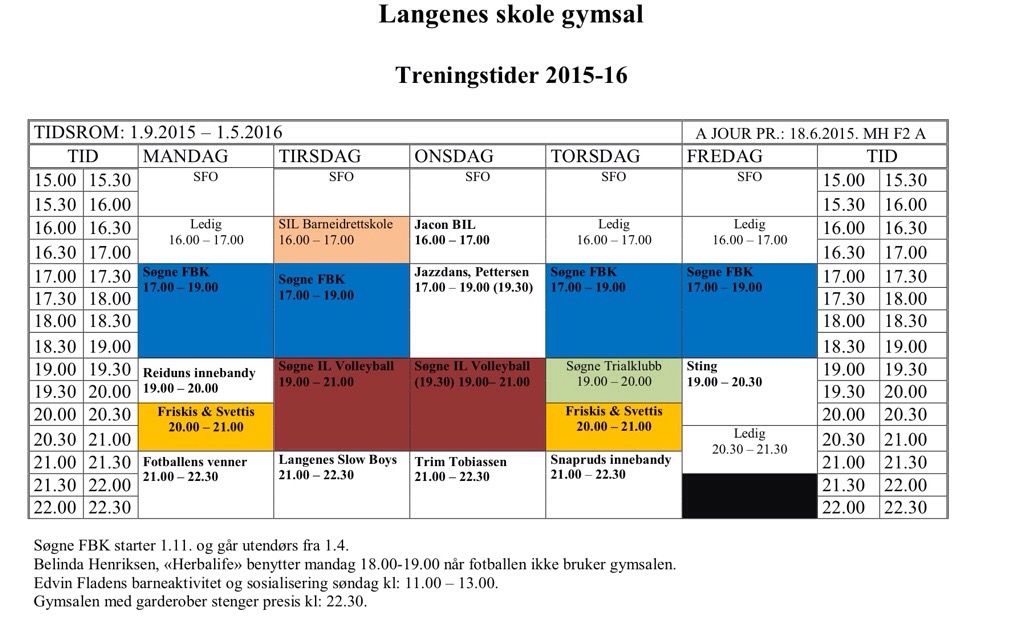 Treningstider høst 2015