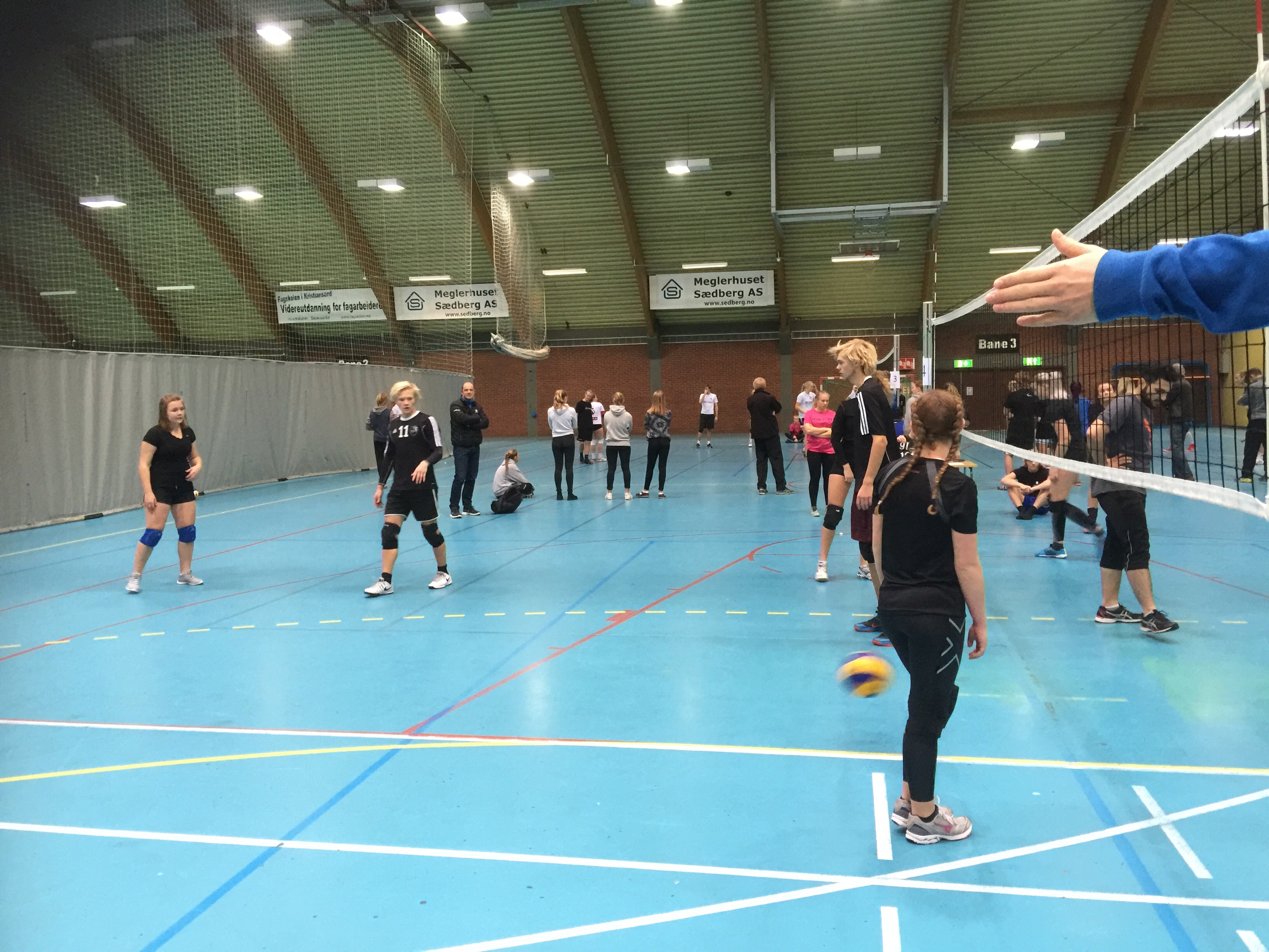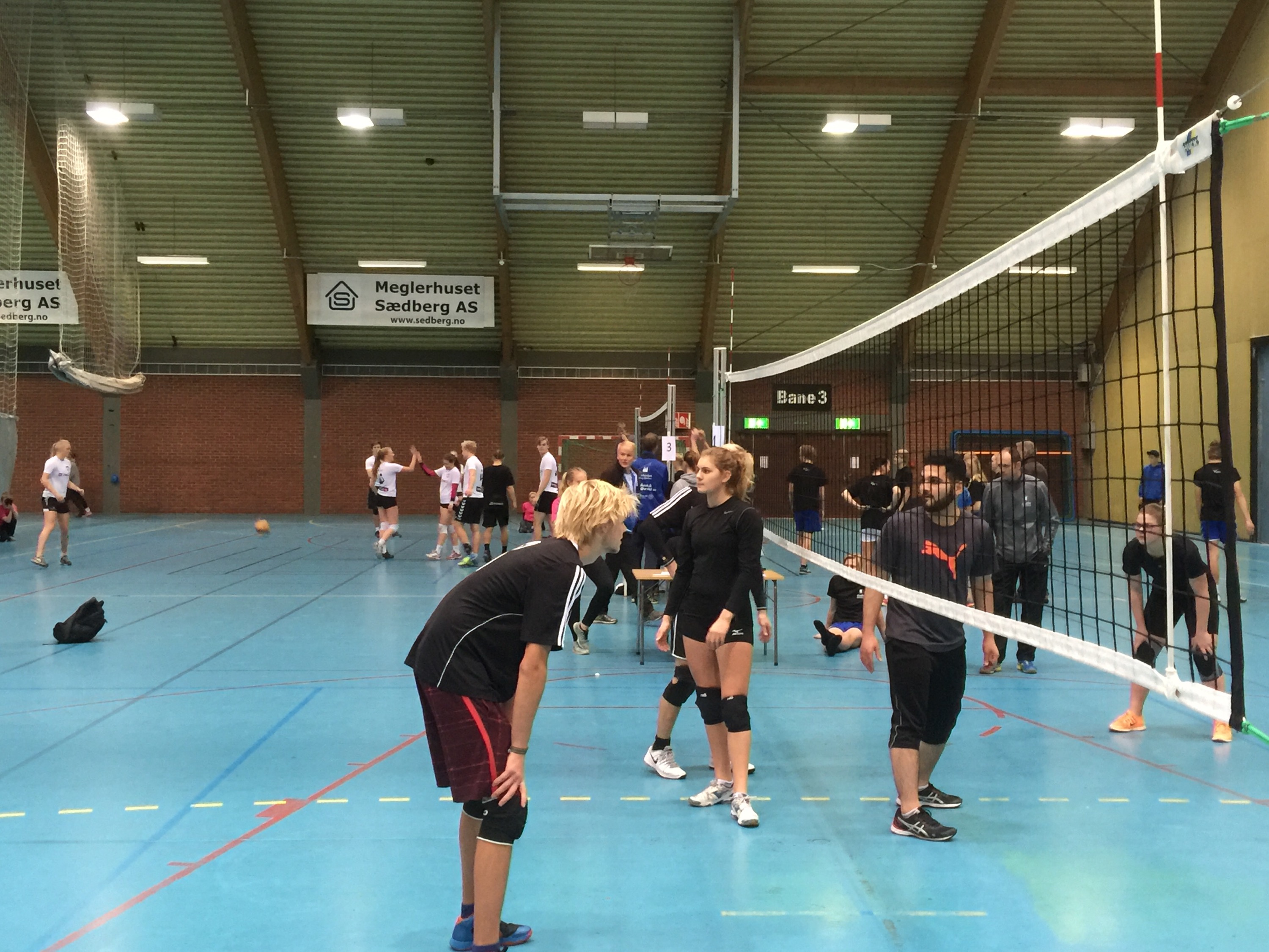 3×3 over nett bagger til legger som tar kmot og triller under nett til kaster.