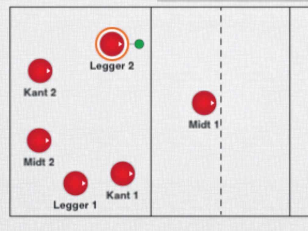 Beach: legger går frem mot nett og har det benet som er mot nett fremst. Som venstre sides legger har man venstre ben frem ( og da nermest nett).øvelse: 2×2