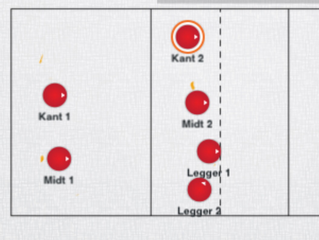 Variant. Ha 3 foran ved nett. Den i midten smasher ned mot køene som tar mottak mot personene i rockering.