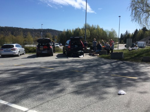 Jeg kjører haakon på karate og da finner jeg 40 mennesker med grill og spill på Tangvallbanene!!