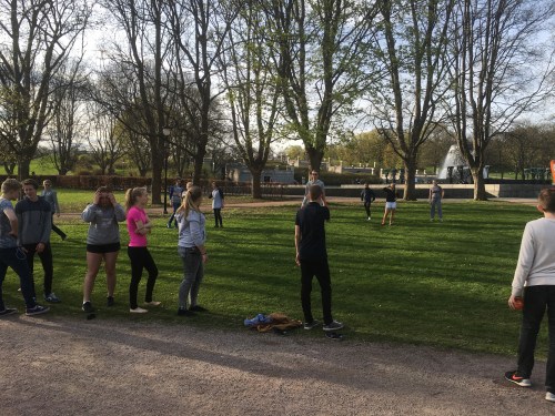 Jeg kjører haakon på karate og da finner jeg 40 mennesker med grill og spill på Tangvallbanene!!