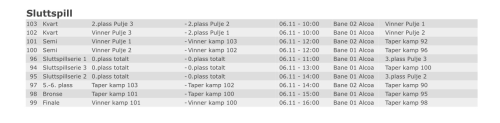 16-18 6 manns lag.Mulig dette blir mixturnering
