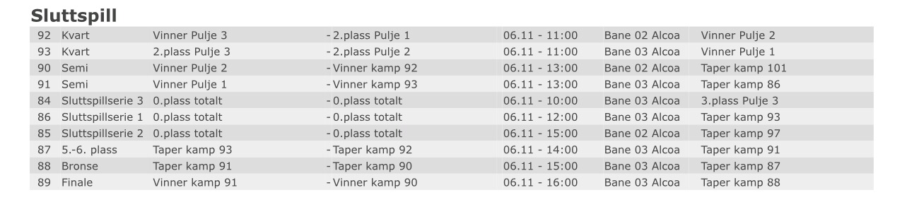 16-18 6 manns lag.Mulig dette blir mixturnering