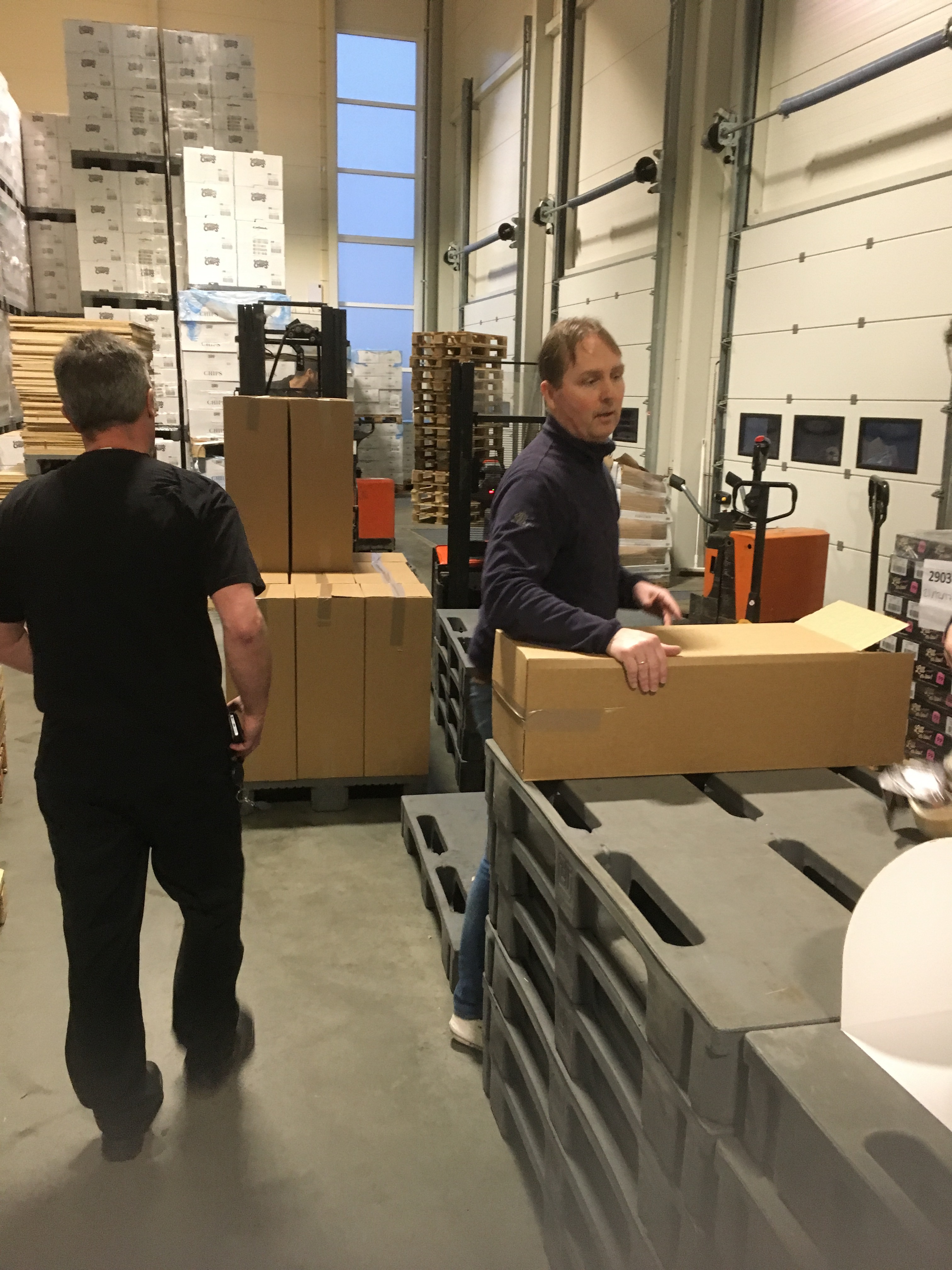 Olav, Roar, Roy , Arve og Ulf pakker 150 stk displaykasser med kjeks