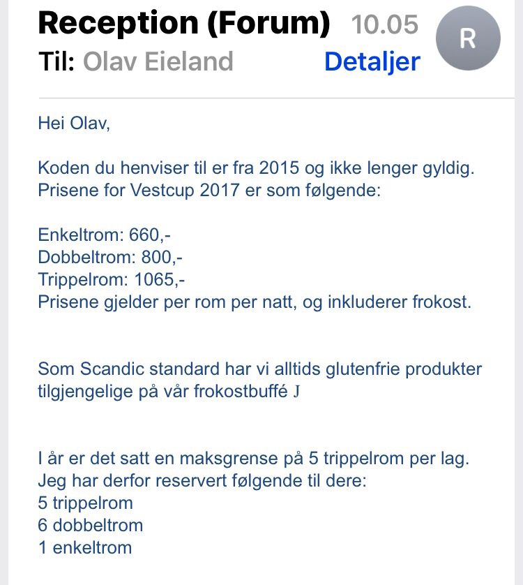 Pr person: påmelding kr 100, kjøring 200, hotell 1000, mat 400, totalt 1700, egenandel 1000, dugnad 500, klubb sponser 200. Man kan kjøpe seg fri fra dugnad, betaler da egenandel 1500.