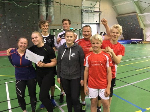 Fra venstre: Kristian Eieland, Endre Try Stousland, Andrea Borøy, trener Olav Eieland, Nora Hallandsvik, Christina Heiland,Vidar Skaaland og Anne Lill Flo Berge (Amanda Bakken med nr 23)