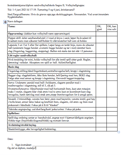 Vi har egen sandvolleyballskole 1-4 juni, kanskje vi får med folk på turnering i kr sand 5-6 juni??